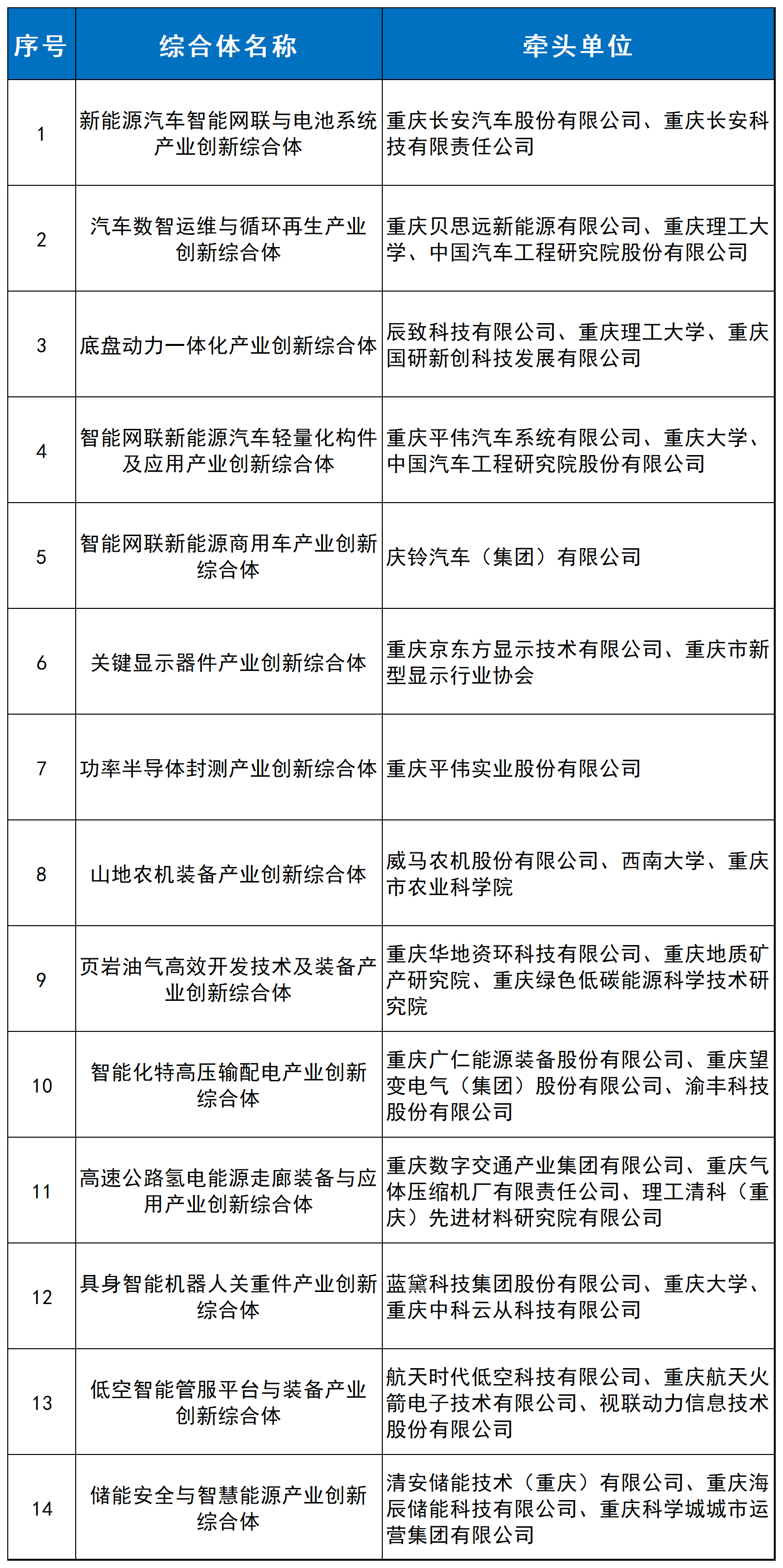 智慧城市网 企业关注】近日,重庆市经济信息委联合市科技局共同公布全市第二批产业创新综合体拟建设单位名单,14个涵盖新能源汽车、高端制造、新能源开发、智能装备等关键领域的创新载体平台上榜。