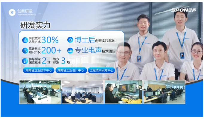 世邦通信始终坚持创新驱动,每年研发投入超过10%,拥有博士后创新实践基地,聚集了一批以博士、硕士为首的“专精新”科研队伍,依托湖南省企业技术中心、湖南省工业设计中心、湖南省音频智能感知与分析工程技术研究中心三大平台,构建起完善的创新体系。