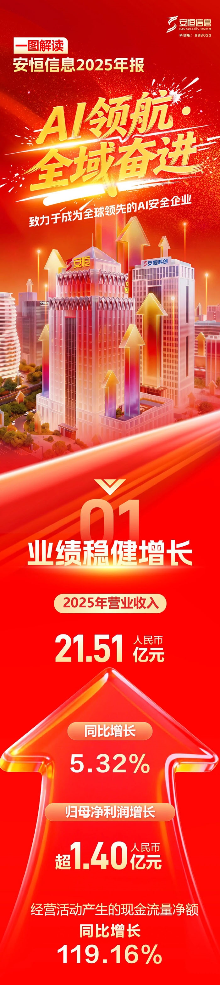 智慧城市网 上市公司】安恒信息(688023.SH)发布2025年年度报告,报告期内,公司实现营业收入21.51亿元,同比增长5.32%。归属于上市公司股东的净亏损5749.92万元,归属于上市公司股东的扣除非经常性损益的净亏损9153.48万元,基本每股亏损0.57元。